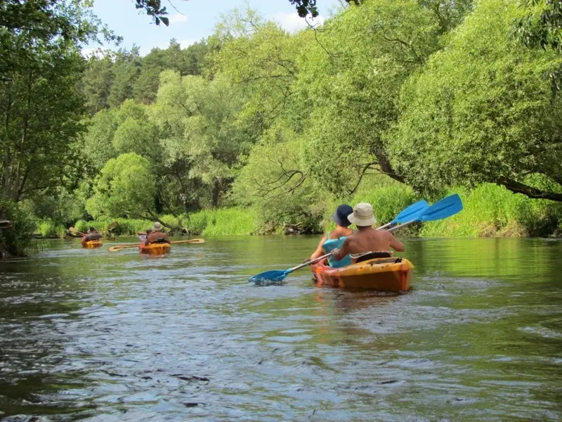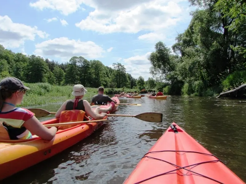 W pakiecie: kajaki polietylenowe 2-osobowe, kapoki, wiosła, parking bezpłatny, transport osób i sprzętu.