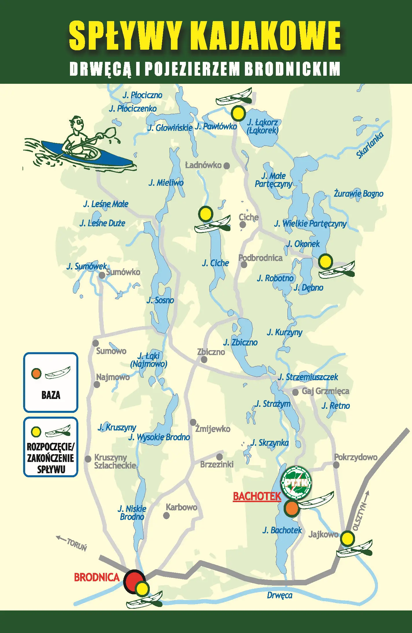 Stanica Wodna PTTK w Bachotku jako najlepsze do tego miejsce proponuje Państwu ofertę spływów kajakowych na Pojezierzu Brodnickim (po połączonych ze sobą jeziorach rzeczką Skarlanką i rzeką Drwęcą). Nasza propozycja to spływy jedno i kilkudniowe.